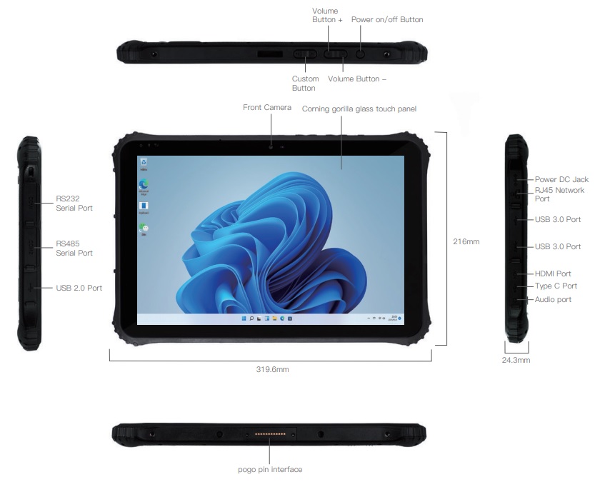 I22J Плантшетная рабочая станция 12.2" со степенью защиты IP65 (1920х1200, процессор Intel Celeron N5100 1.1ГГц, 8Гб ОЗУ, 128Гб SSD eMMC, Mini HDMI 2.0a, 4G LTE, GPS, WiFi 802.11 a/b/g/n/ac (2.4G/5.8G), Bluetooth 5.0, 2xUSB 3.0, 1xUSB2.0, 1xUSB Type-C, 1xRS232, 1xRS485, Audio, MicroSD slot, SIM Slot, емкостной мультитач, фронтальная камера 5Мп, тыловая камера 8Мп, Windows 11 IOT, аккумулятор 7.4V/6300mAh, адаптер питания 19V/3.42A, расширенный диапазон температур -20...+60)