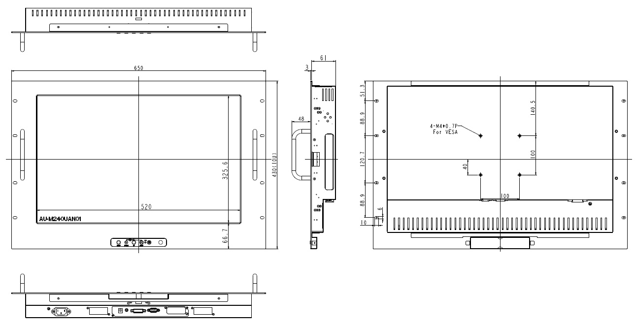 IRM2415-WUA0L1-00001-G30-0002924'' TFT монитор для монтажа в стойку 19'' с защитой IP65 по передней панели, 1920x1200, 1000 нит с входом VGА, защитное стекло, питание 12...24 В DC,температура -20...50 °C