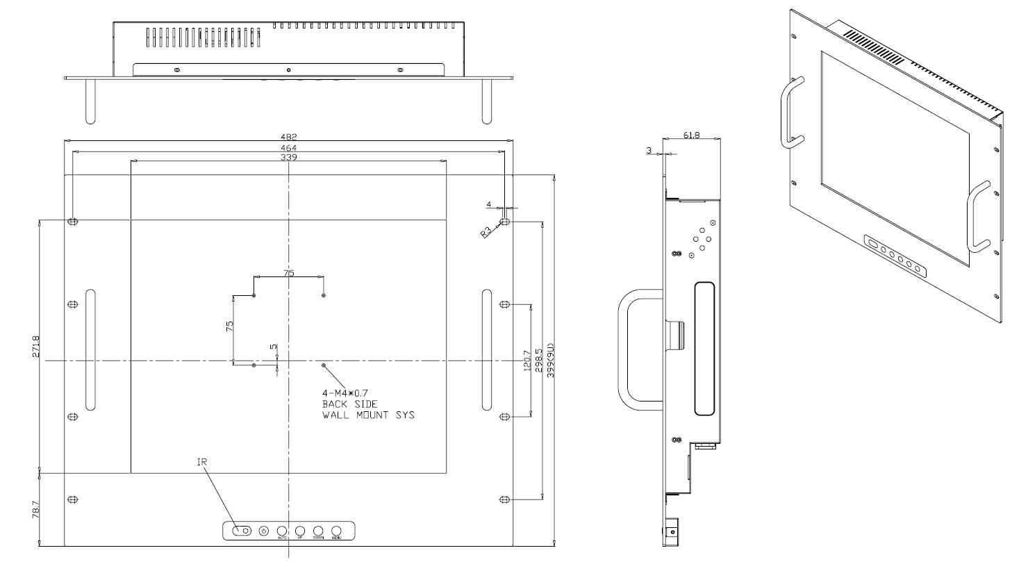 RM1705-EN25L0-00003 17'' TFT монитор для монтажа в стойку 19'' 1280x1024, 250 нит с входом VGA, DVI, HDMI, 2 динамика по 2Вт