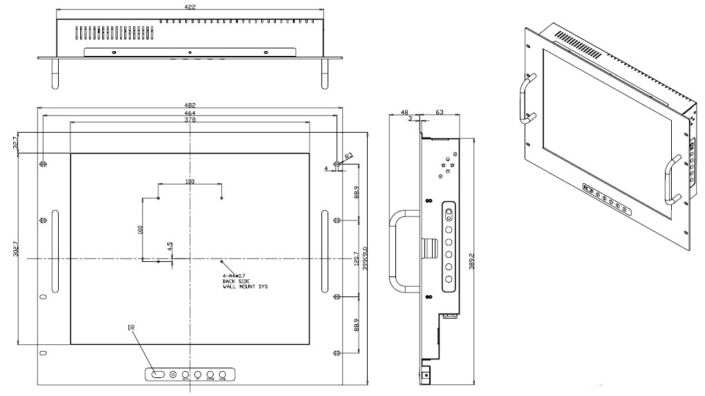 RM1905-EN70L0-00003 19'' TFT монитор для монтажа в стойку 19'' 1280x1024, повышенная яркость 700 нит с подсветкой LED и входом VGA, DVI, HDMI