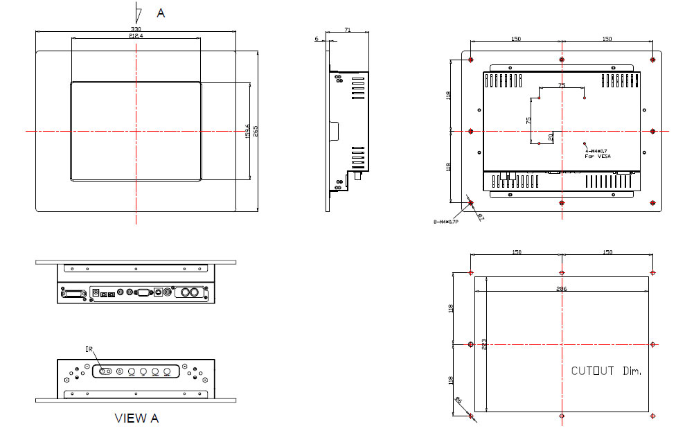 IPM1045-SN35L0-00001-G30 10.4'' TFT монитор для монтажа в панель 800x600, 350 нит с входом VGA, защита IP65 по передней панели