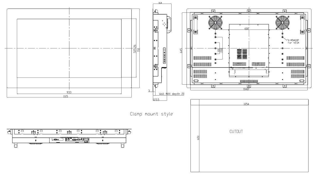 IPM4304-WH35L0-00003-G60 Дисплей для монтажа в панель 43'' (16:9), 1920x1080, 350 нит с входом VGA, DVI и HDMI, защита IP65 по передней панели, защитное стекло 6мм