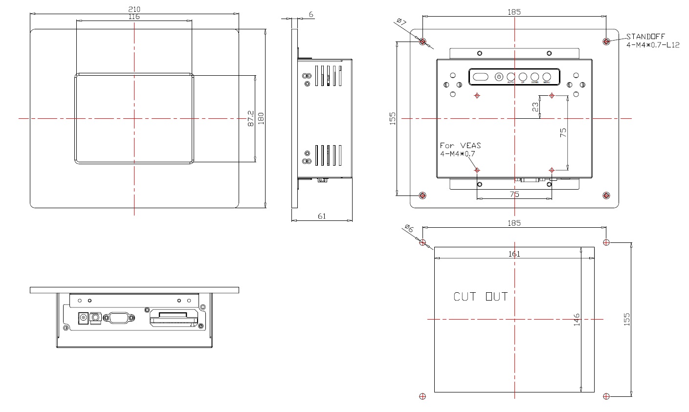 PM0576-VN40L1-00001 5,7'' TFT монитор для монтажа в панель 640x480, 400 нит LED, вход VGA, 2 динамика по 2Вт, питание 12 В DC, расширенный жиапазон температур (-30...+80)