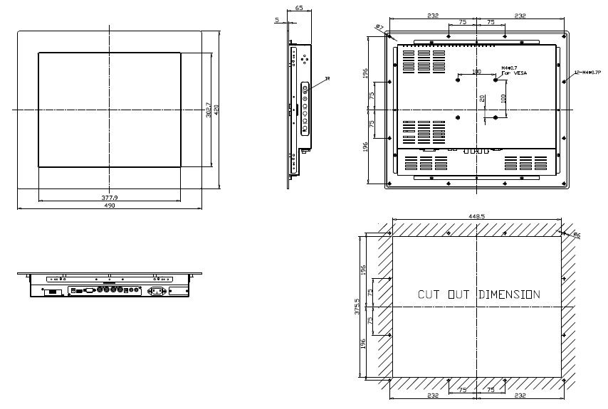 PM1905-EN25L0-00003 19'' TFT монитор для монтажа в панель 1280x1024, 250 нит с входом VGA, DVI, HDMI, аудиосистема 2х2 вт