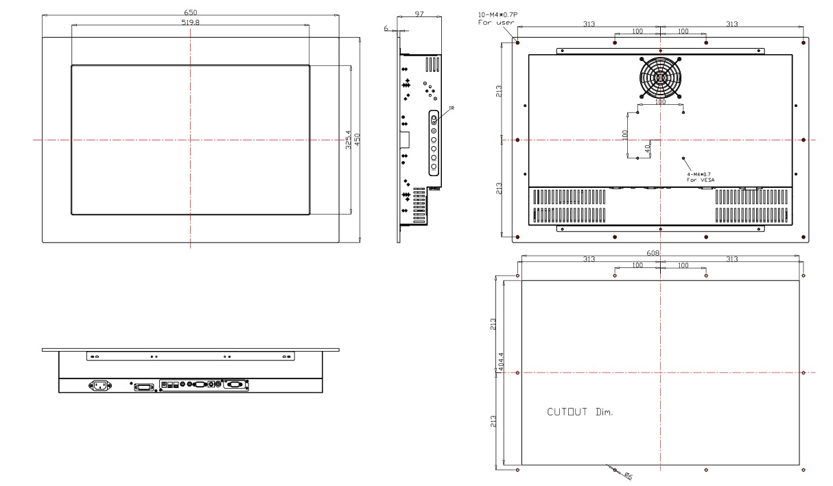 PM2415-WU30L0-00001 Дисплей для монтажа в панель 24'' (16:10), 1920x1200, 300 нит, вход VGA
