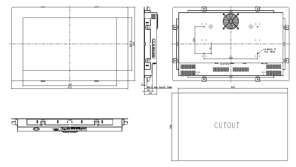 PM3205-WH35L0-00003 Дисплей для монтажа в панель 32'' (16:9), 1920x1080, 350 нит с входами VGA, DVI, HDMI