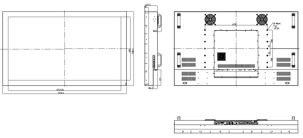 CH5504-QF35L1-0000T55'' беcкорпусной монитор для монтажа на стену и в панель, разрешение 3840x2160, яркость 350 нит с входом 3xHDMI + 2xDP, 2 динамика по 2 Вт, защита IP65 по передней панели, VESA Mount, расширенный температурный диапазон -20...55℃