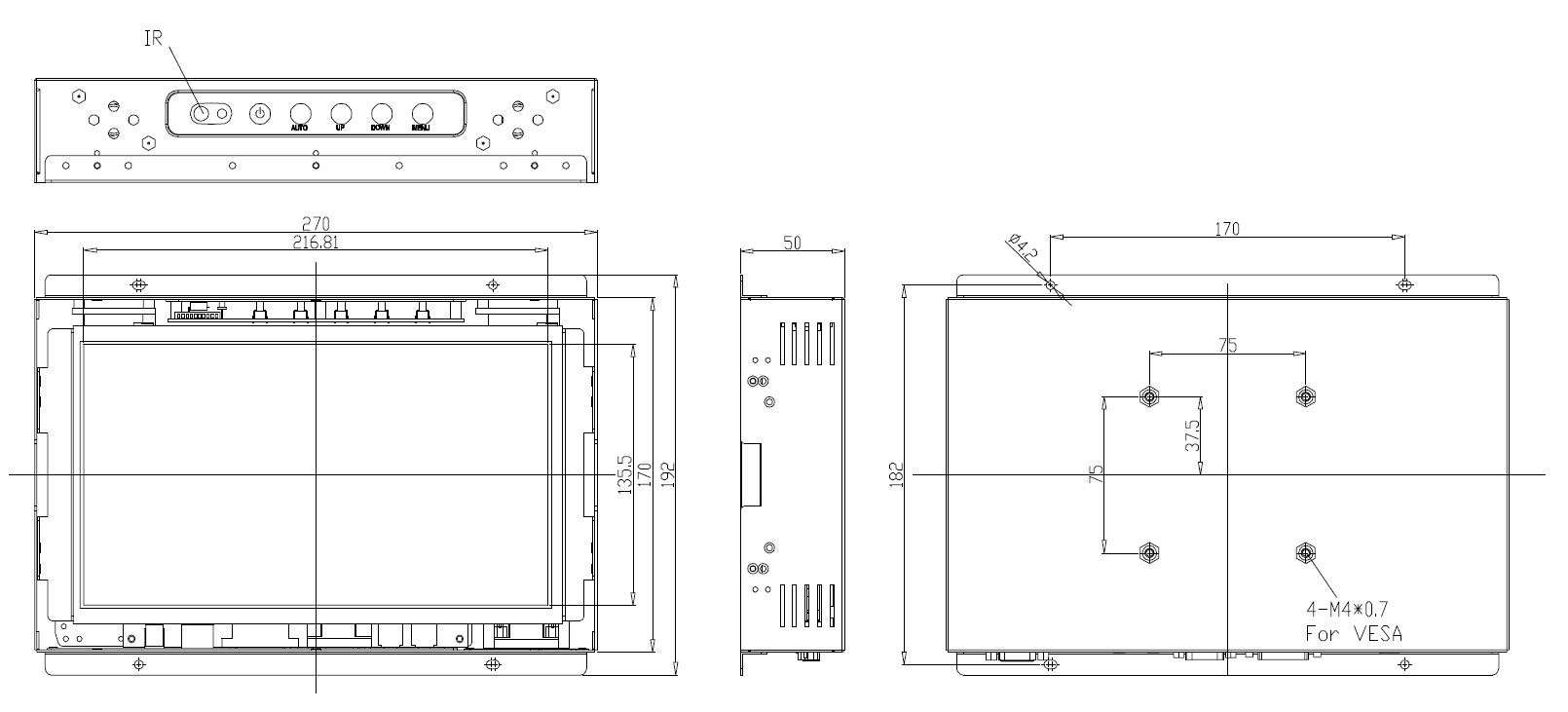 | Монтаж | в панель, на плоскость, VESA75 |