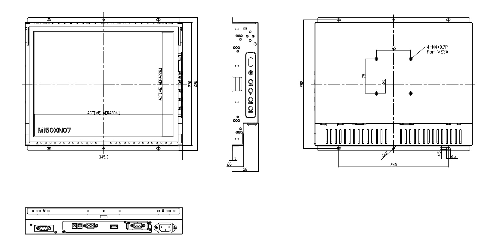 OF1505-XN70L0-00003 15'' TFT безкорпусной монитор для монтажа на плоскость 1024x768, повышенной яркости 700 нит с входом VGA, DVI, HDMI