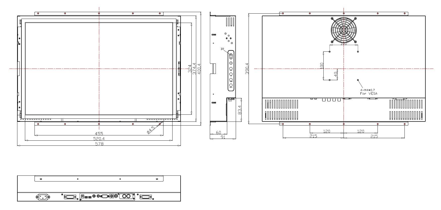 OF2415- WU70L0-00003-IT31 24'' беcкорпусной монитор для монтажа на стену и в панель, разрешение 1920x1200, яркость 700 нит LED, с входом VGA, DVI, HDMI, инфракрасный сенсорный экран мультитач USB
