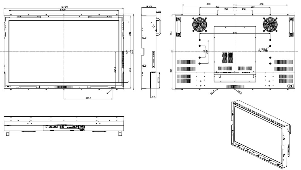 OF4204-WH40C0-00003-5ST31 42'' беcкорпусной монитор для монтажа на стену и в панель, разрешение 1920x1080, яркость 400 нит, с входом VGA, DVI и HDMI, сенсорный экран на ПАВ USB