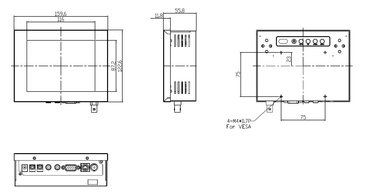 CH0576-VN70L0-00002-5RT31 5.7'' LED монитор в корпусе для монтажа на плоскость 640x480, 700 нит с входом VGA, DVI, резистивный сенсорный экран (USB)