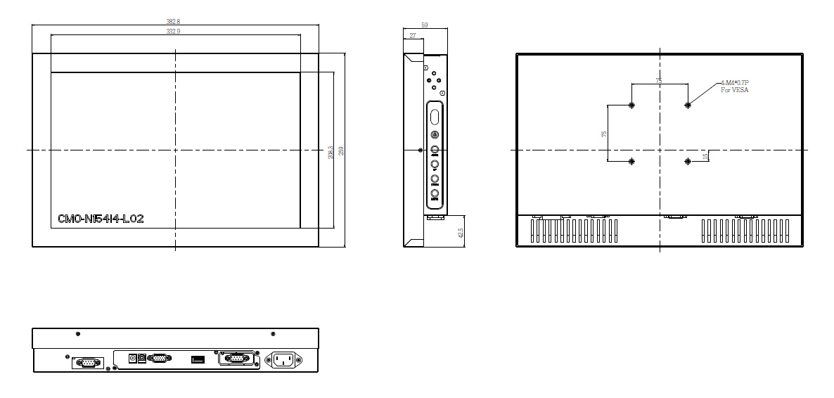 CH1545-WE40L1-00001 15.4'' TFT монитор в корпусе для монтажа на плоскость 1280x800, 400 нит с входом VGA, 2 динамика по 2Вт, расширенный диапазон температур (-30...+80)