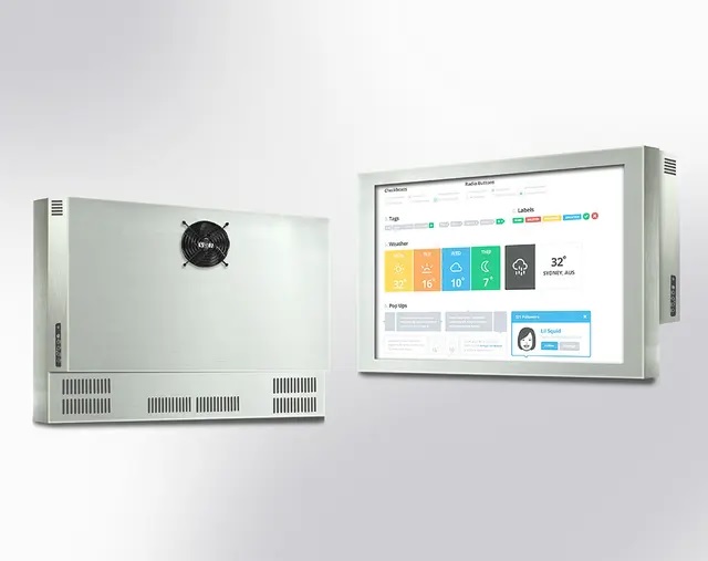 ISCH3205-WH35L0-0000G-G30 32'' TFT монитор в корпусе для монтажа на плоскость 1920x1080, 350 нит с входом VGA, HDMI, DP, защита IP65 по передней панели, корпус из нержавеющей стали