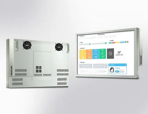 ISCH4304-WH35L0-0000G-G30 43'' TFT монитор в корпусе для монтажа на плоскость 1920x1080, 350 нит с входом VGA, HDMI, DP, защита IP65 по передней панели, корпус из нержавеющей стали