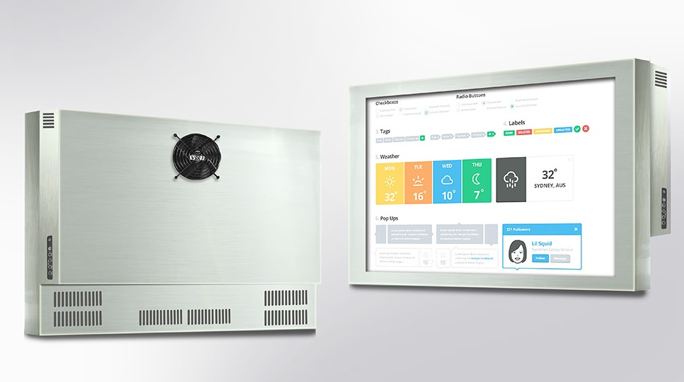 SCH3205-QF35L0-00003 Настенный дисплей 32'' (16:9), корпус из нержавеющей стали, разрешение 3840x2160, яркость 300 нит с входом VGA, DVI и HDMI