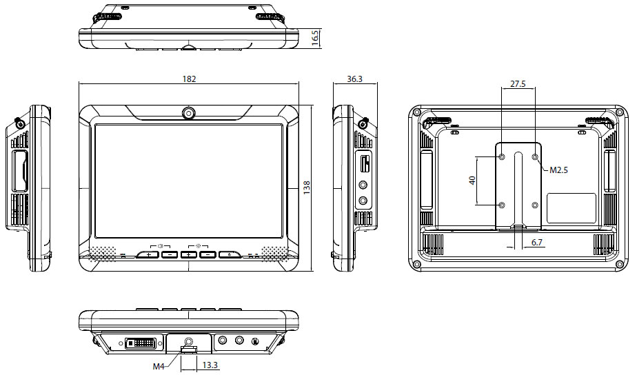 VMD1000-B 7'' TFT монитор с сенсорным экраном с входом LVDS (DB26), SD/MMC/MS Card Reader, 2 встроенных динамика, 2 микрофонных входа, расширенный диапазон температур, питание 6...36В DС, IP54 по передней панели