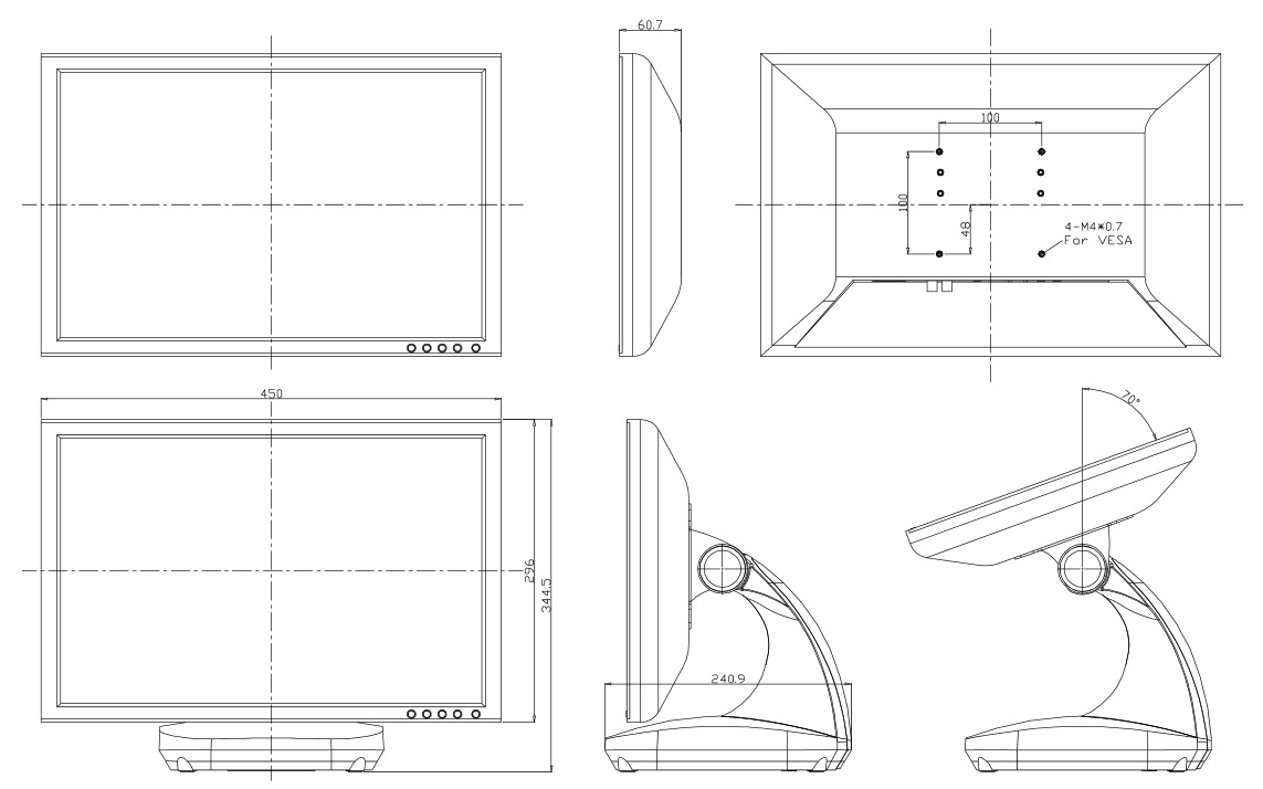 L19W5-WP25L0-00001Настольный дисплей 19'' (16:10) , разрешение 1440x900, яркость 250 нит с входом VGA, 2 динамика 2Вт, источник питания 12В