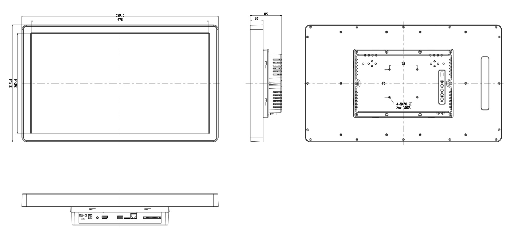 L215A5-WH25L0-00001-5RT31 Настольный дисплей 21.5' (16:9) с резистивным сенсорным экраном (USB), разрешение 1920x1080, яркость 250 нит, вход VGA, 2 динамика 2Вт, источник питания 12В
