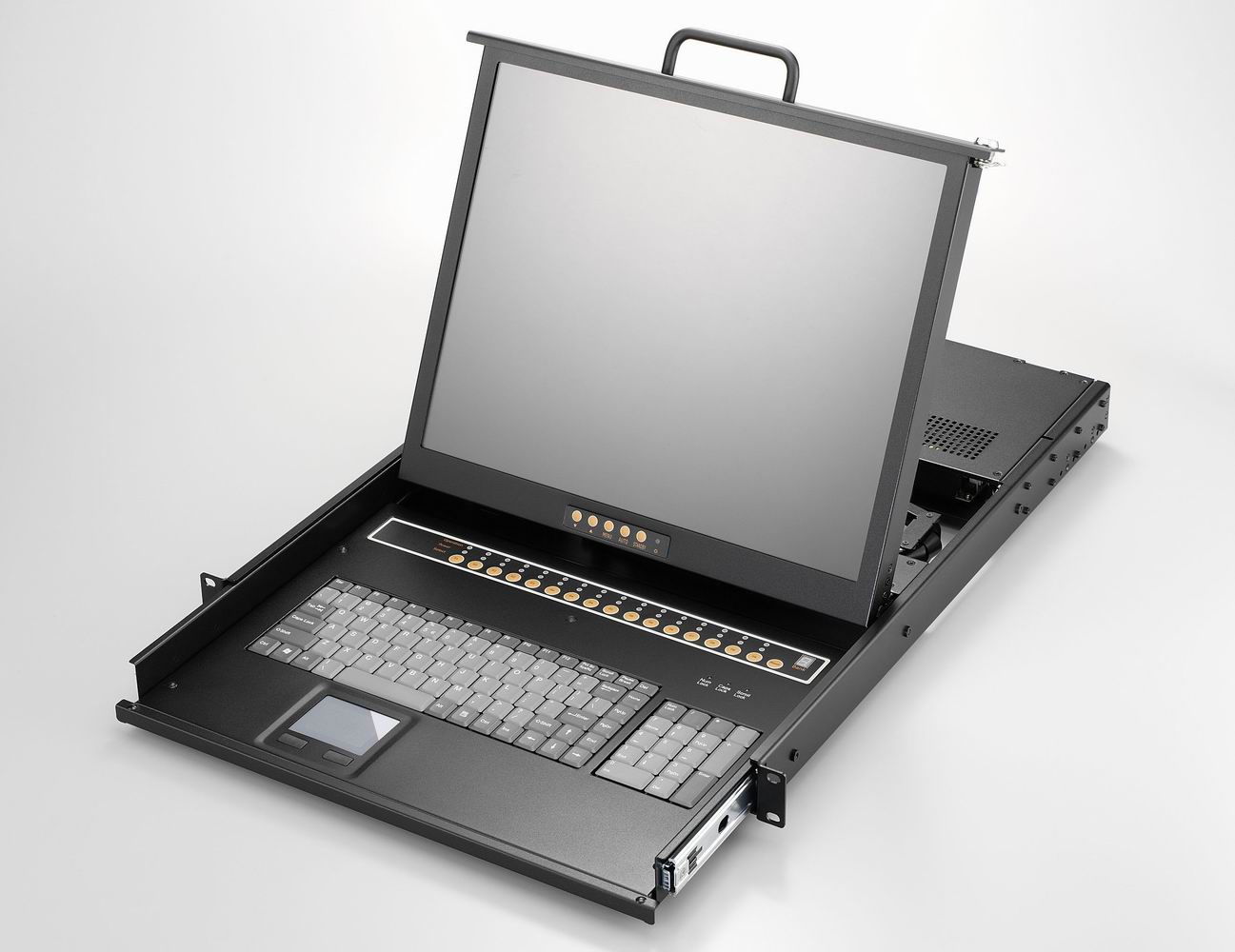 AMK816-17CBRU 1U выдвижной LCD монитор 17'' с русифицированной клавиатурой, Touchpad, переключатель на 16 компьютеров, комплект из 16-ти кабелей 1.8м VGA/KB/Mouse PS/2 и USB