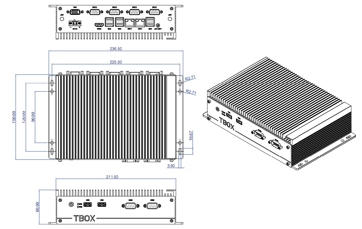 TBOX-2810 Безвентиляторный компактный компьютер (процессор Intel Core i3-8145U 2,1 ГГц запаян, DDR4 SO-DIMM,-2400 до 16 ГБ, HDMI, VGA, 2xGLAN, 4xUSB3.0, 4xUSB2.0, 5xRS232 + 1xRS232/485, audio, mSATA, отсек для накопителя 2,5", 1хMini-PCIe, питание 9-24 В DC, источник питания, расширенный диапазон температур -20...70)