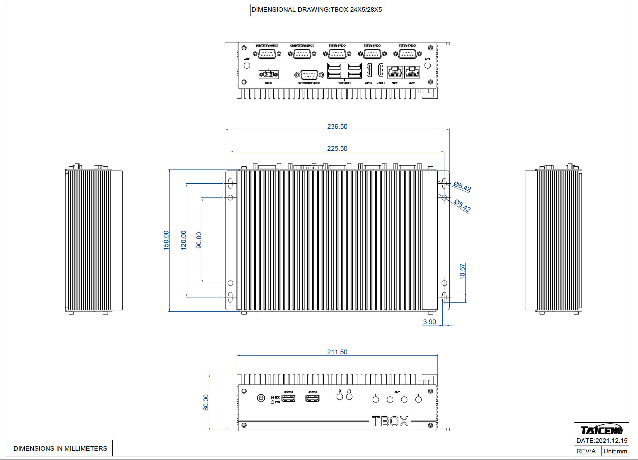 TBOX-2815 Безвентиляторный компактный компьютер (процессор Intel Core i3-8145U 2,1 ГГц запаян, DDR4 SO-DIMM до 16 ГБ, 2хHDMI, 2xGLAN, 4xUSB3.0, 2xUSB2.0, 5xRS232 + 1xRS232/485, audio, mSATA, 3х M.2, питание 9-36 В DC, источник питания, расширенный диапазон температур -20...70)