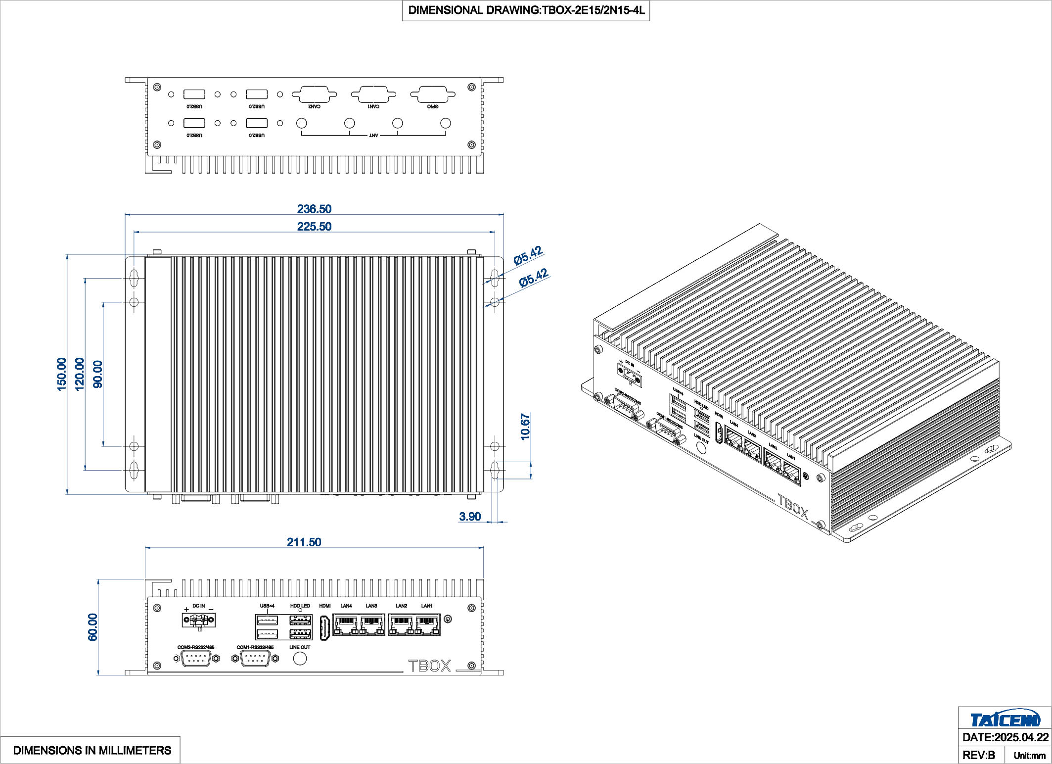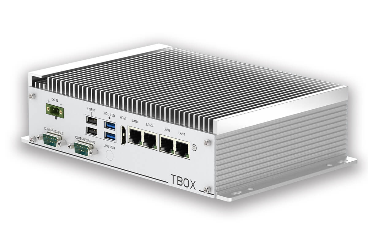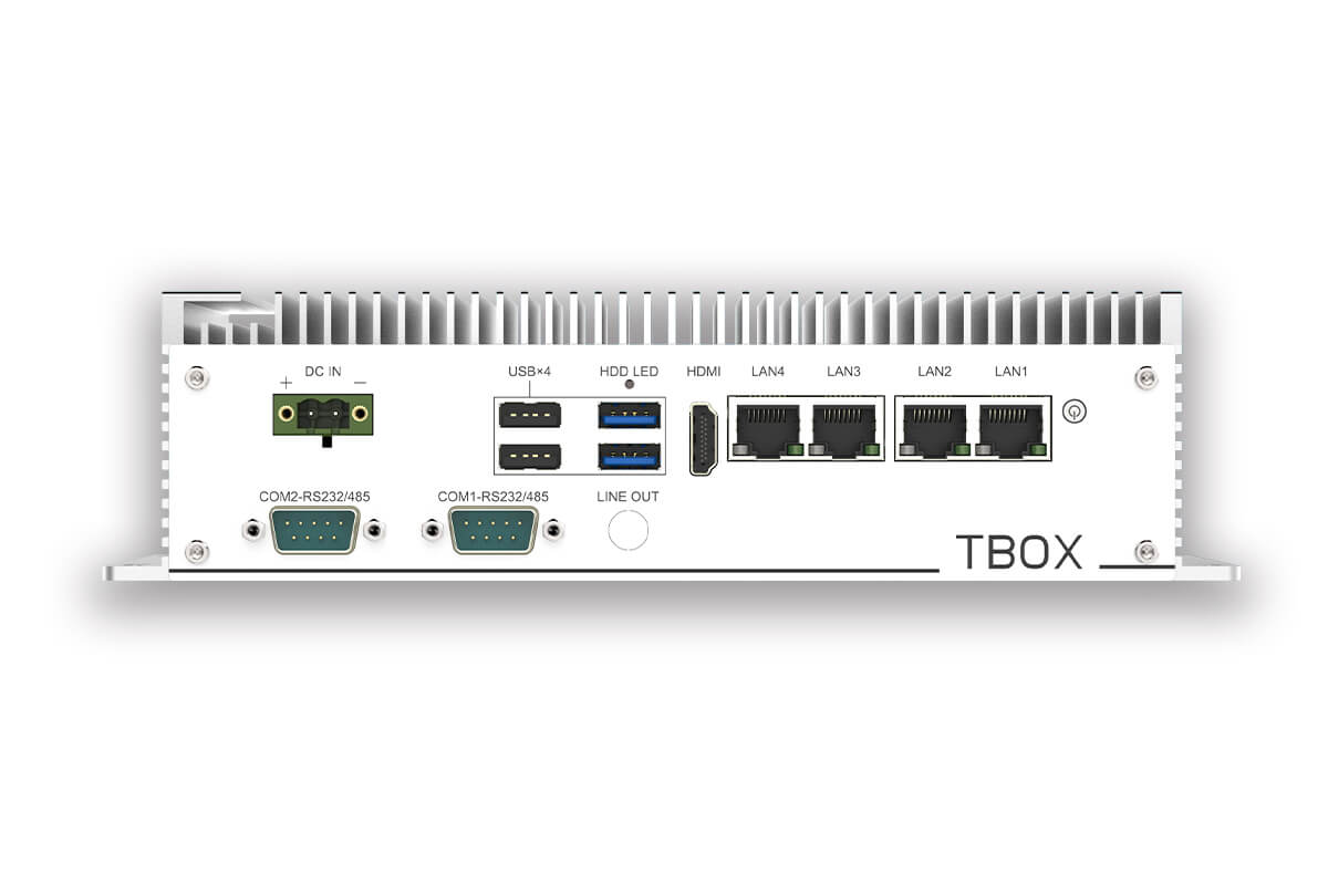TBOX-2E15-4L Безвентиляторный компактный компьютер (процессор Intel Elkhart Lake J6412 2ГГц запаян, HDMI, 4xGLAN, 2xUSB3.0, 2xUSB2.0, 2xRS232, слот для накопителя 1x M.2 2280 M-Key, Mini-PCIe slot, питание 12В DC, источник питания, расширенный диапазон температур -20...70)