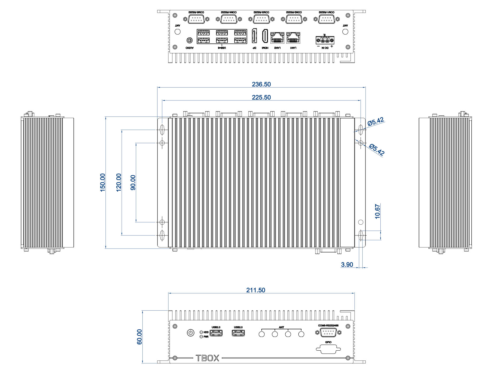 TBOX-2N15 Безвентиляторный компактный компьютер (процессор Intel N97 (Alder Lake-N) 2.0 ГГц запаян, DDR4 до 16 Гб, HDMI, DP, 2xGLAN, 4xUSB3.0, 4xUSB2.0, 5xRS232 + 1xRS485, audio, слот для накопителя 1x M.2 2280 M-Key slot (PCIe x2 Gen III, NVMe), GPIO, питание 9...36 В DC, источник питания, расширенный диапазон температур -20...70)