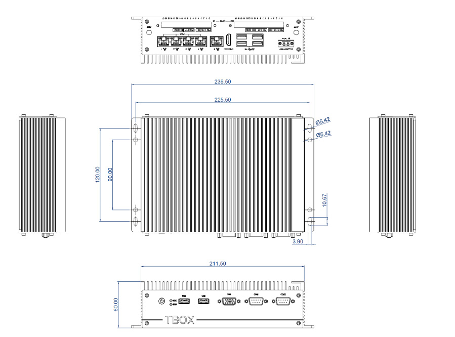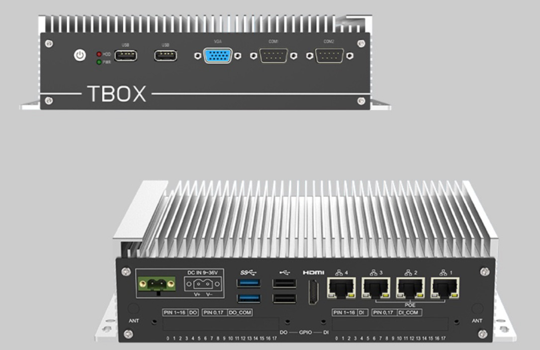TBOX-3D10 Безвентиляторный компактный компьютер (процессор Intel Core i3-1215U запаян, VGA, HDMI, 5xGLAN (4 c POE), 4xUSB3.1, 2xUSB2.0, RS232 + RS485 слот для накопителя 1x M.2 2280 M-Key slot (PCIe x2 Gen III, NVMe), WiFi, питание 9...36В DC, источник питания, расширенный диапазон температур -20...60)