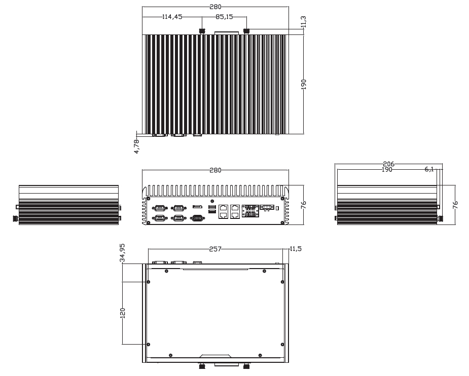 | Разъемы на задней панели | DB15 (VGA), DisplayPort, 4xRJ45 (LAN), 4xUSB3.0, 4xDB9 (COM), audio (MIC-In, Lin-Out), DC Power |