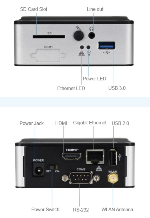 EB-AN01-E8BT-H Безвентиляторный встраиваемый компьютер процессор Realtek RTD1195 dual core ARM Cortex-A7 1.2ГГц, ОЗУ 1Гб, 8Гб встроенный SSD, HDMI, GLAN, 1xUSB2.0, 1xUSB3.0, 1xRS232, SD Slot, WiFi, Bluetooth, VESA 75x75, Android 4.4.4 предустановлен, питание 12В-24В DC, внешний адаптер питания 22,5Вт 15В DC