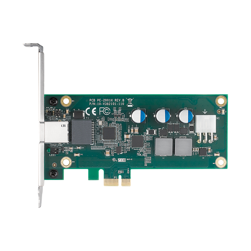 PE-2001HPCIe-x1 сетевая плата 1 канал PoE 10/100/1000, IEEE 802.3at, до 90 Вт при 54 В, питание 12 В, расширенный диапазон температур -25...+60