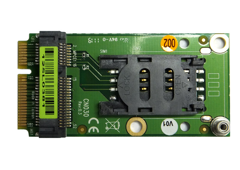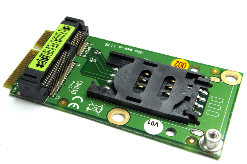 CN030Mini-PCI Express адаптер для SIM-карты. Для установки Mini-PCI Express 3G модуля на материнские платы, не имеющие встроенного слота для SIM-карты. Длина 61,5 мм.