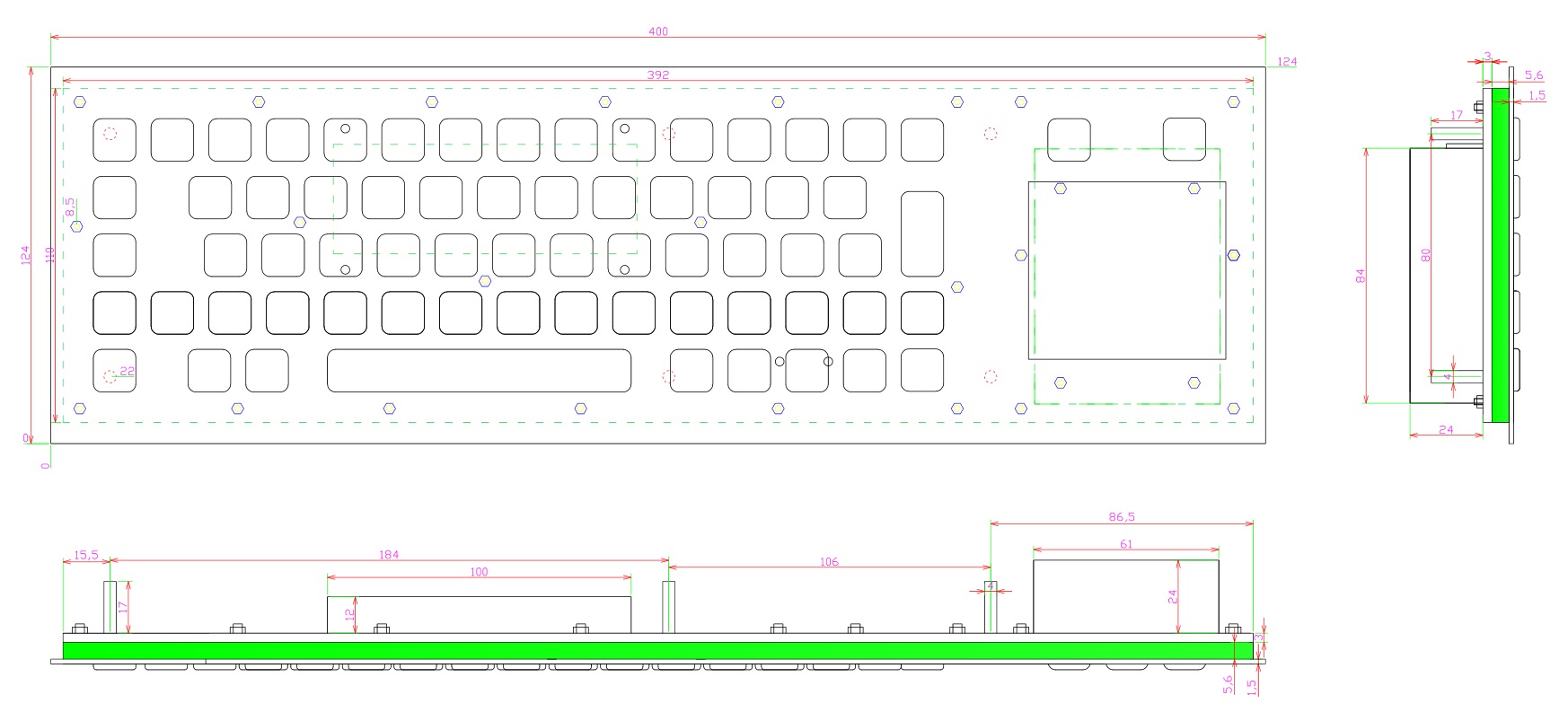 K-TEK-A400TP Антивандальная влагозащищённая металлическая клавиатура 83 клавиши с тачпадом, серебристого цвета, монтаж в панель, IP65