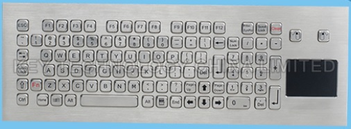 K-TEK-A420TP-KP-FN-DWP Антивандальная влагозащищённая металлическая клавиатура 103 клавиши с тачпадом, серебристого цвета, монтаж в панель, IP67, русская/английская раскладка