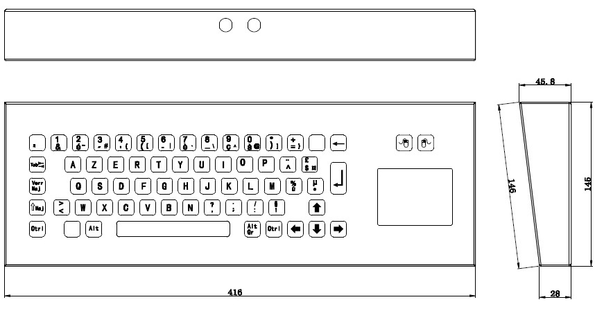 KB-CA1 Антивандальная настольная влагозащищённая металлическая клавиатура 66 клавиш с трекболом 38 мм серебристого цвета