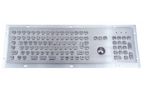 MKB704 Антивандальная влагозащищённая металлическая клавиатура 106 клавиш серебристого цвета с трекболом 25 мм