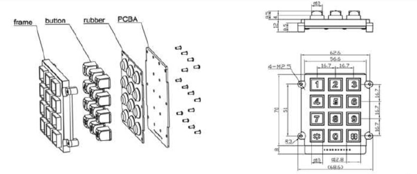 K-TEK-A62KP-ACМатричная антивандальная влагозащищённая металлическая клавиатура, 12 клавиш, серебристого цвета, без контроллера
