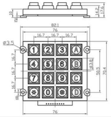 K-TEK-A82KP-AC-BL Матричная антивандальная влагозащищённая металлическая клавиатура, 16 клавиш с подсветкой, серебристого цвета, без контроллера