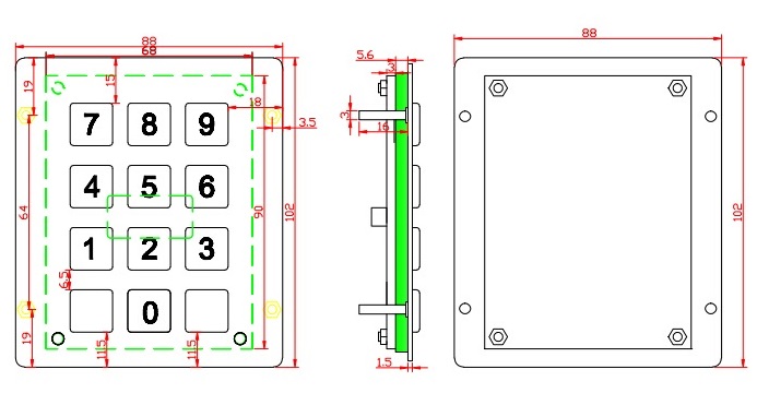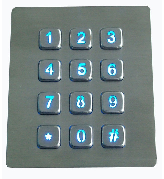 K-TEK-A88KP-AC-BL Матричная антивандальная влагозащищённая металлическая клавиатура, 12 клавиш с подсветкой, серебристого цвета, без контроллера