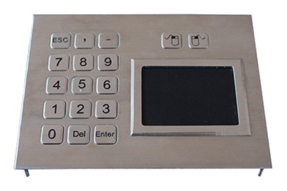 K-TEK-B160TP-KP Антивандальная влагозащищённая металлическая клавиатура, 17 клавиш, тачпад, серебристого цвета, интерфейс USB или PS/2