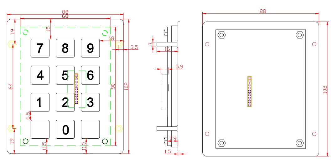 K-TEK-B88KP-AC-BL Матричная антивандальная влагозащищённая металлическая клавиатура, 12 клавиш с подсветкой, серебристого цвета, без контроллера