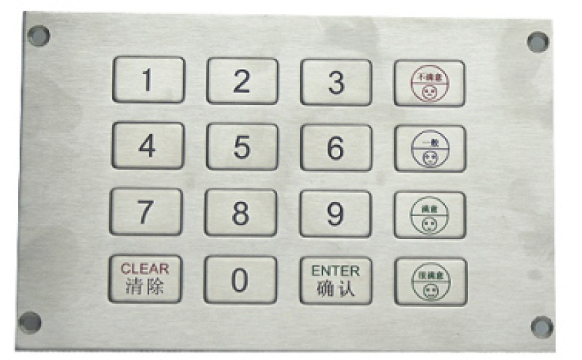 KP923 Антивандальная влагозащищённая металличесая клавиатура 16 клавиш серебристого цвета