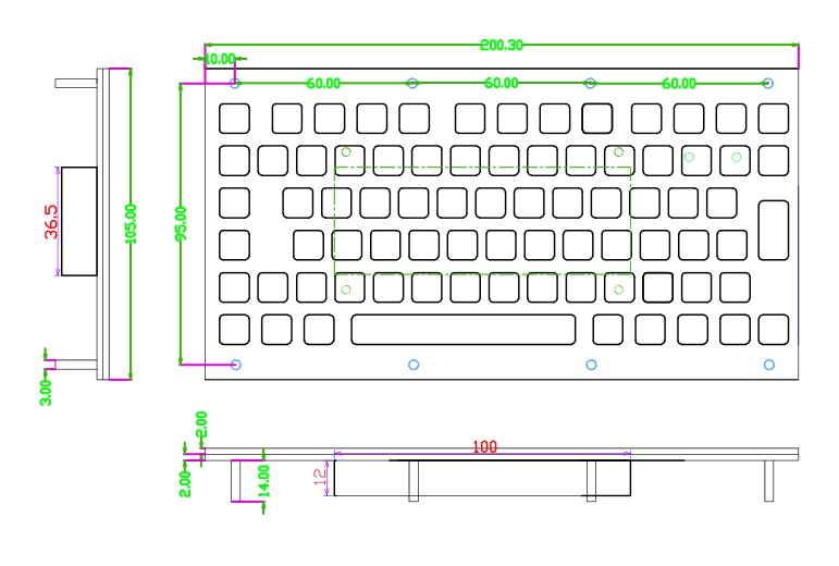 K-TEK-D200-FN Мембранная влагозащищённая металлическая клавиатура 78 клавиш, монтаж в панель, IP65