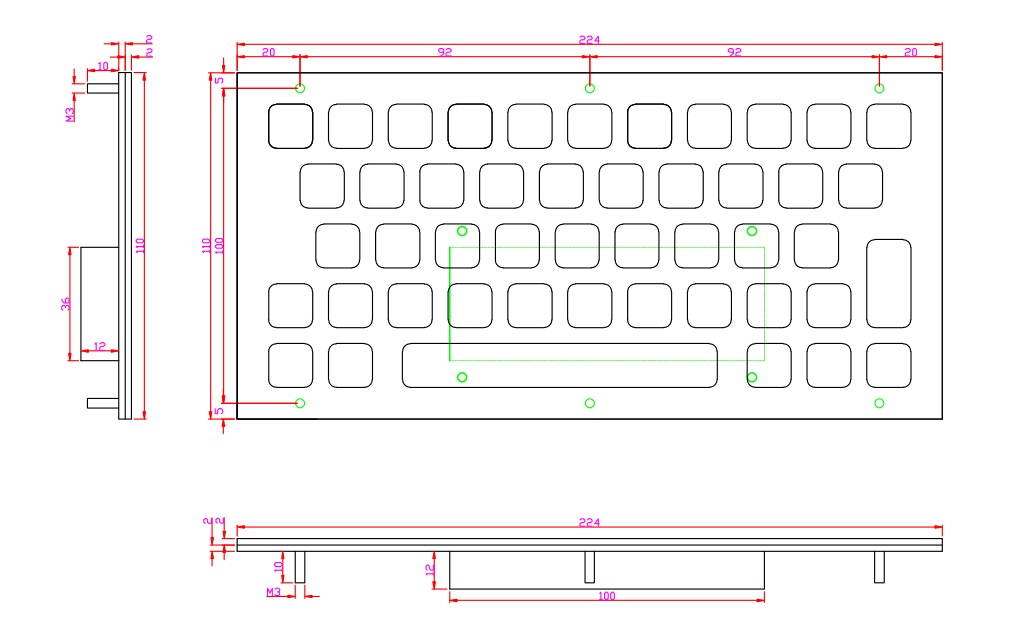 K-TEK-D224 Мембранная влагозащищённая металлическая клавиатура 47 клавиш, монтаж в панель, IP65