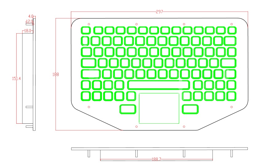 K-TEK-D275TP-FN Мембранная влагозащищённая металлическая клавиатура с тачпадом 89 клавиш, черный цвет, монтаж в панель, IP65