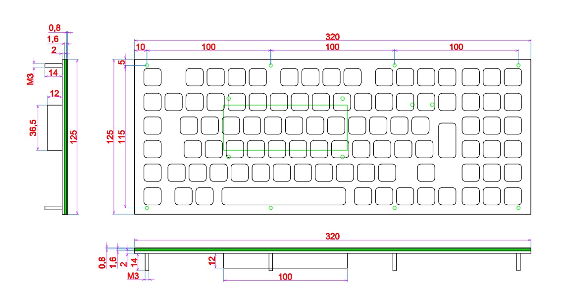 K-TEK-D320KP-FN Мембранная влагозащищённая металлическая клавиатура 95 клавиш, монтаж в панель, IP65
