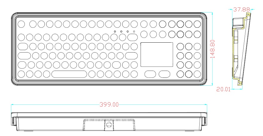 K-TEK-D396TP-KP-FN-DT Мембранная влагозащищённая металлическая клавиатура с тачпадом 108 клавиш, черный цвет, IP68