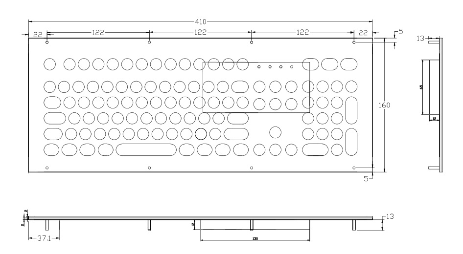 K-TEK-D410KP-FN Мембранная влагозащищённая металлическая клавиатура 107 клавиш, черный цвет, монтаж в панель, IP65