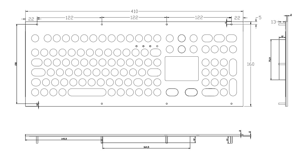 K-TEK-D410TP-KP-FN Мембранная влагозащищённая металлическая клавиатура с тачпадом 108 клавиш, белый цвет, монтаж в панель, IP65